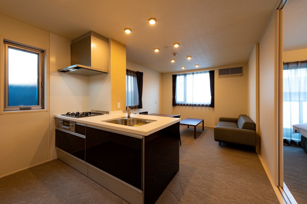 四条烏丸で注目を浴びているホテルはエアコンや洗濯機などの設備が充実しており、キッチンには食器や料理器具も用意されていますので、長期滞在される際にとても便利です。